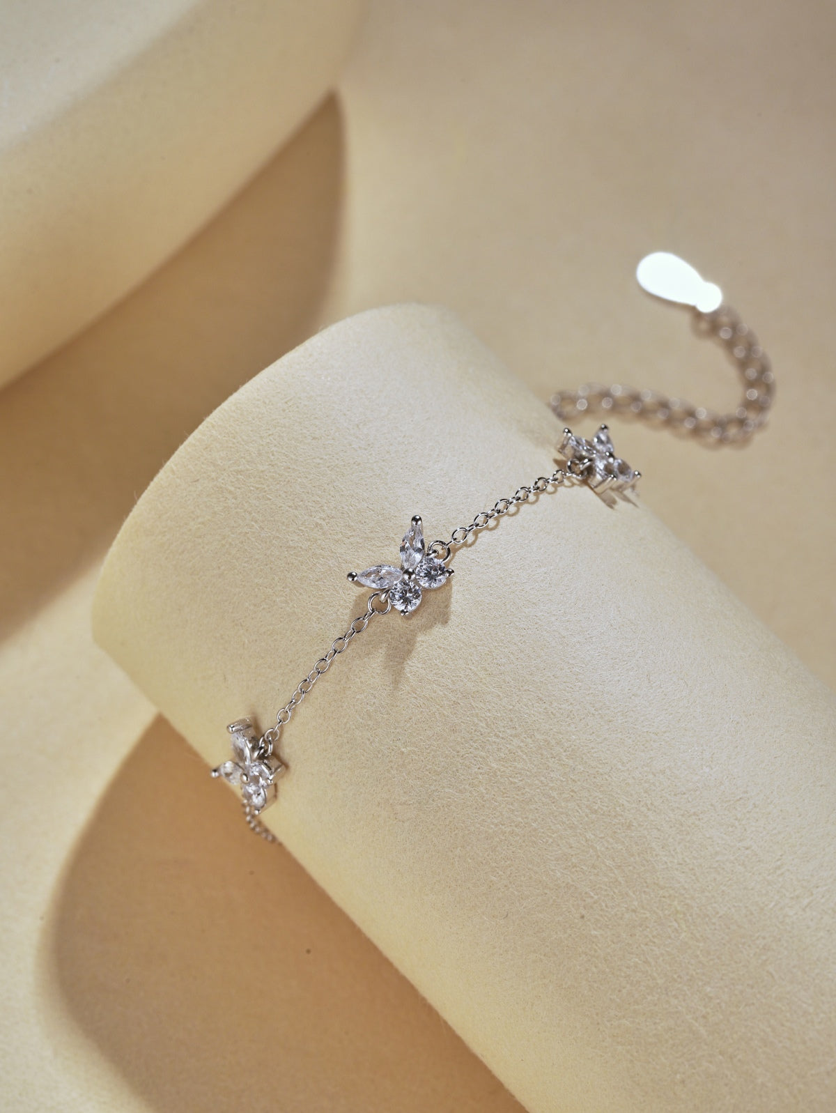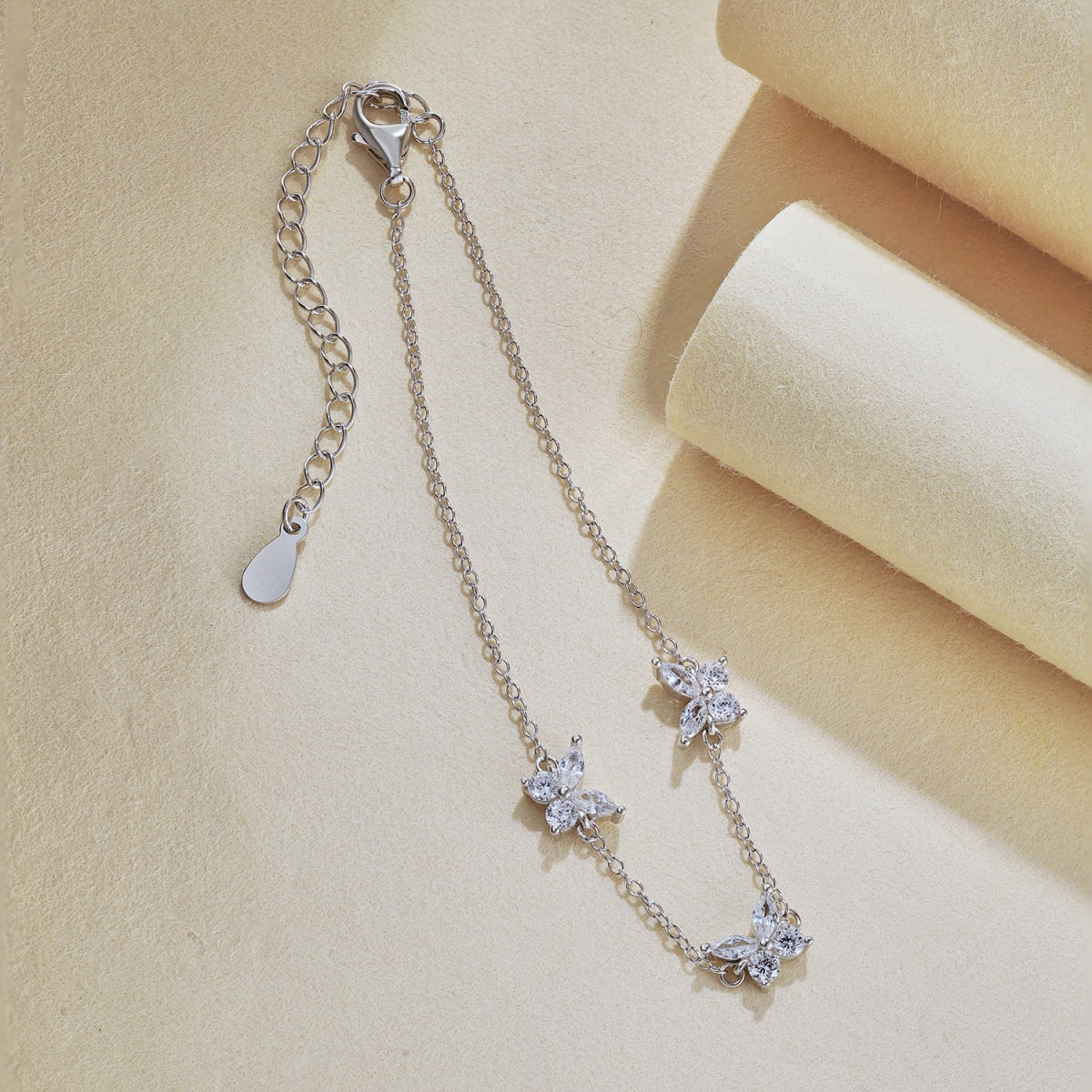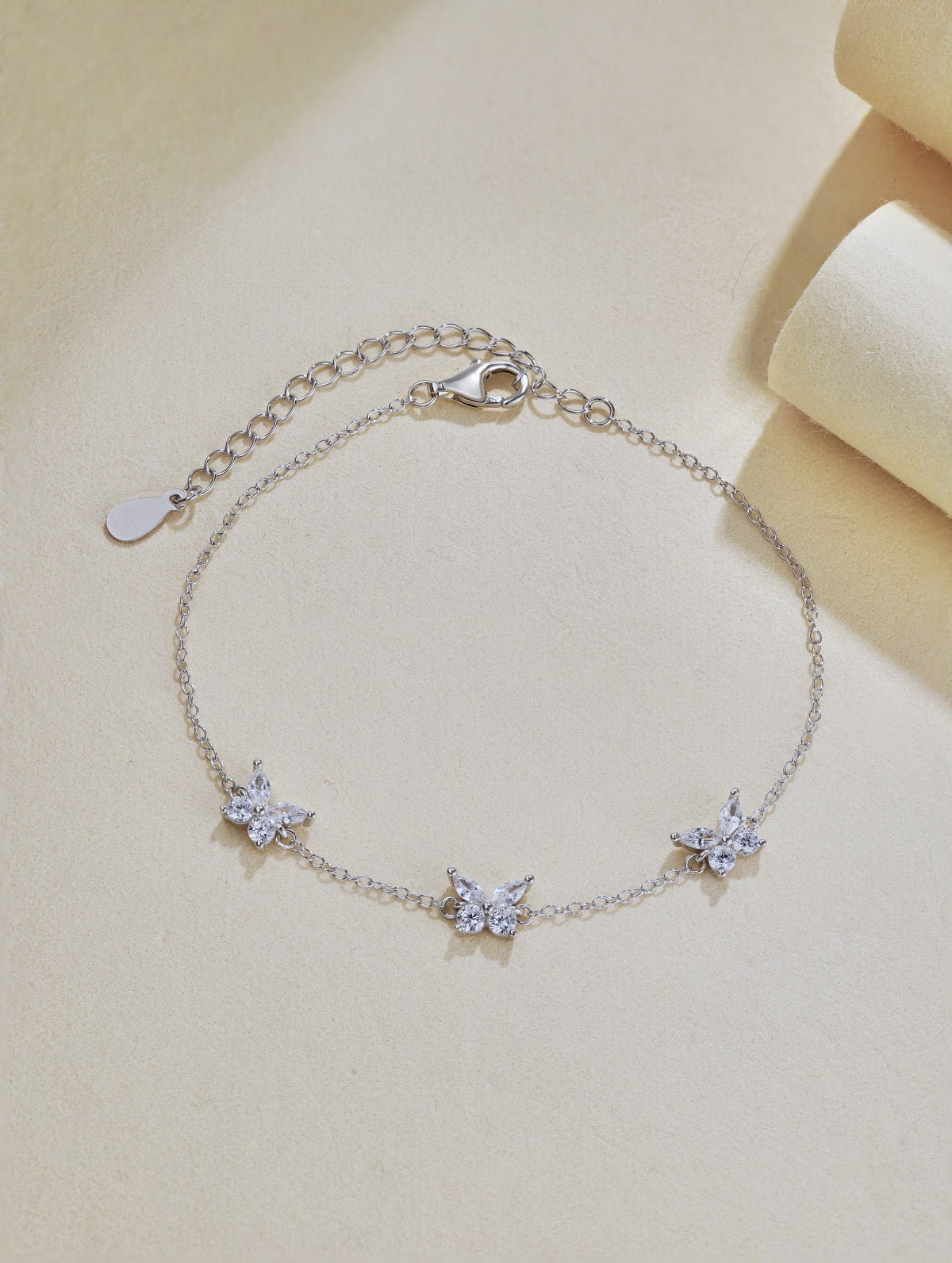Brățară cu trei fluturi din argint 925 cu zirconii, reglabilă
