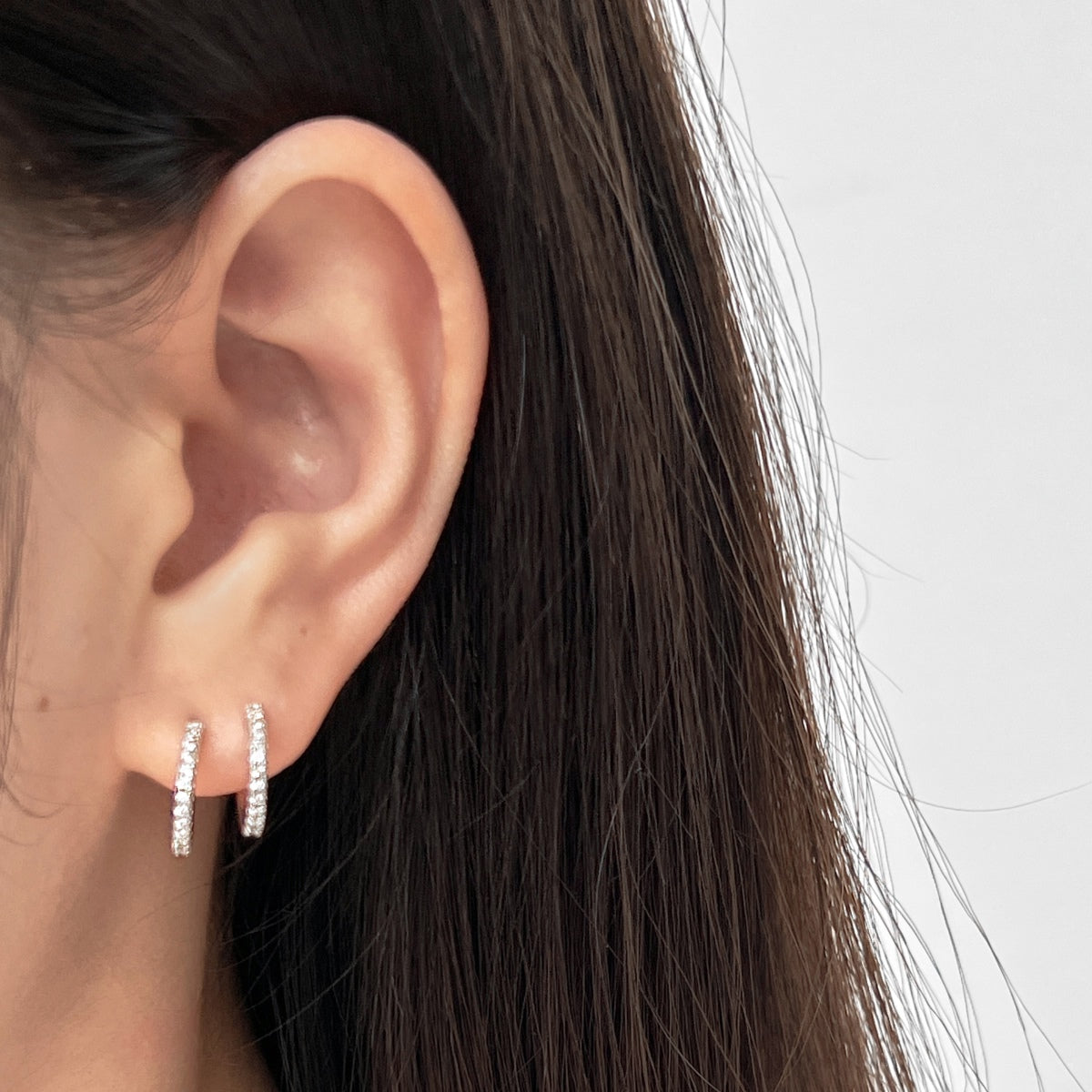 Cercei huggie subțiri din argint 925 cu micro-zirconii, fini și eleganți