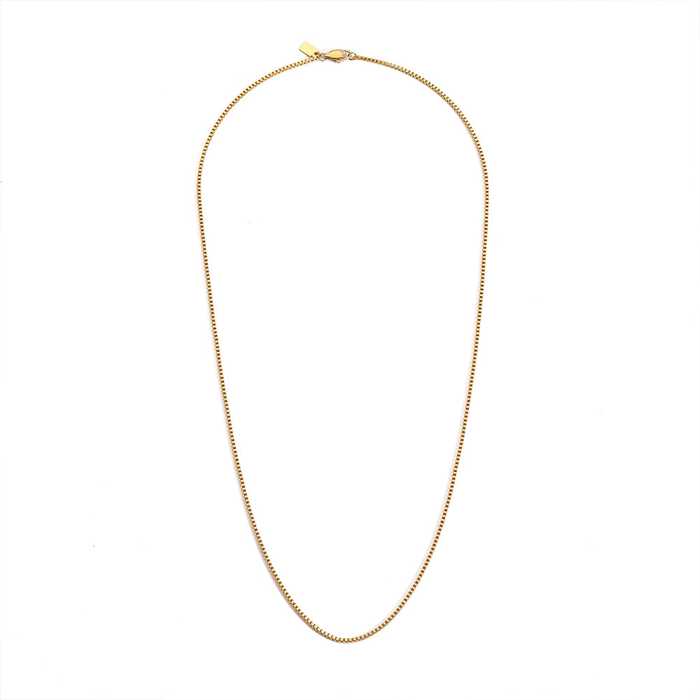 Lanț bărbătesc tip box (square chain), realizat din oțel inoxidabil 316L – hipoalergenic, fără nichel și plumb. Își păstrează luciul până la 2 ani fără înnegrire și este suficient de rezistent pentru purtare zilnică, inclusiv la duș. Finish minimalist, disponibil în auriu sau white gold, perfect de purtat solo sau în layering.